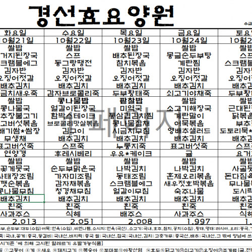 10월13일~10월19일 식단표