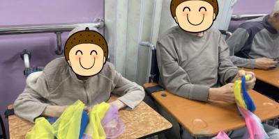 여가 활동으로 파라슈트를 이용한 신체 활동을 하였습니다. 먼저 탄성이 있는 작은 공으로 손의 감각과 근력을 위해 공을 쥐었다 펴는 동작을 반복하신 뒤 네트가 붙어있는 파라슈트 천에 크기가 다른 공을 던지며 집중하셨습니다. 큰 천을 어르신들께서 함께 잡고 움직이며 네트 안으로 공이 들어가도록 협동하여 활동하셨...