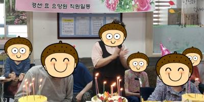 저희 경선효요양원에서는 매달 생신을 맞으신 어르신들을 축하드리기 위해 생신잔치를 열고 있습니다. 8월에도 어르신들을 모시고 축하의 시간을 가졌습니다. 직원들과 어르신들이 한 자리에 모여 생일 축하 노래를 부르고 준비된 케이크와 간단한 간식을 나누어 드시며 따뜻한 시간을 보냈습니다. 매달 가정통신문에 생신 ...